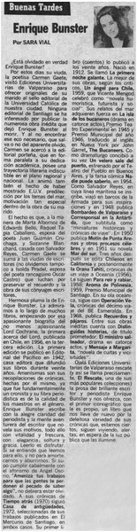 Enrique Bunster [artículo] Carmen Gaete de Bunster.