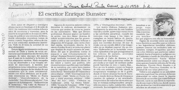 El escritor Enrique Bunster [artículo] Marino Muñoz Lagos.