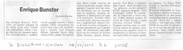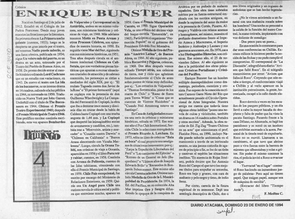 Crónicas de Enrique bunster [artículo] Fernando Quilodrán.