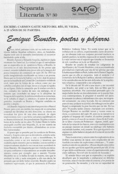 Enrique Bunster, poetas y pájaros [artículo] Carmen Gaete Nieto del Rio.