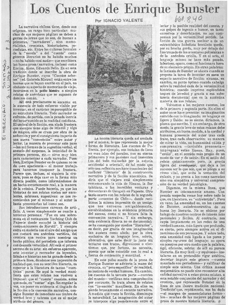 Los cuentos de Enrique Bunster [artículo] Ignacio Valente.