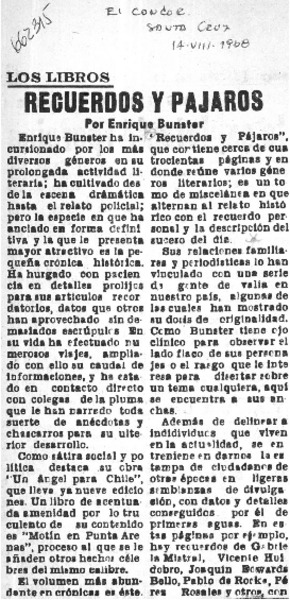 Bunster, Enrique - Autores chilenos - Recuerdos y pájaros