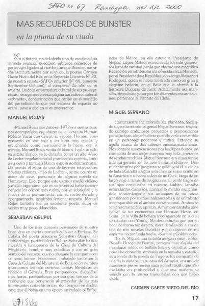 Más recuerdos de Bunster en la pluma de su viuda [artículo] Carmen Gaete Nieto del Río.