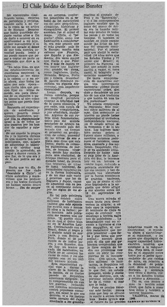 El Chile inédito de Enrique Bunster [artículo] Germán Butendieck.