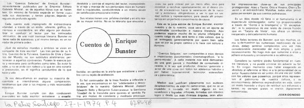 Cuentos de Enrique Bunster [artículo] Juan Donoso.