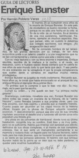 Enrique Bunster [artículo] Hernán Poblete Varas.
