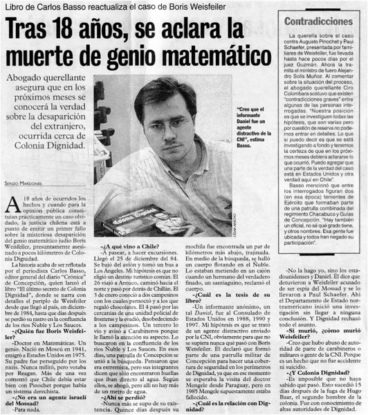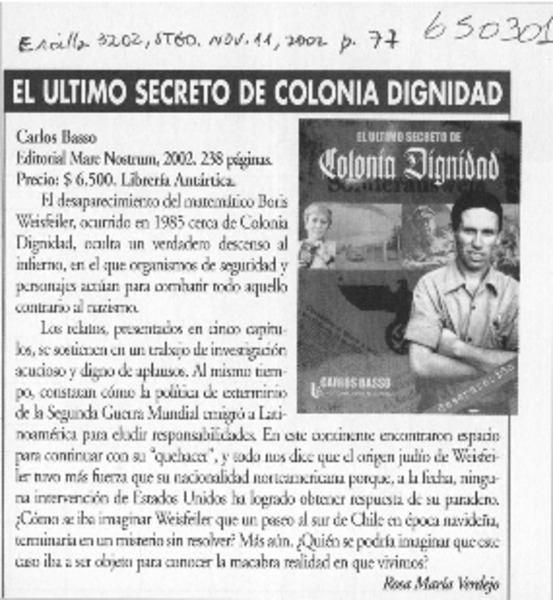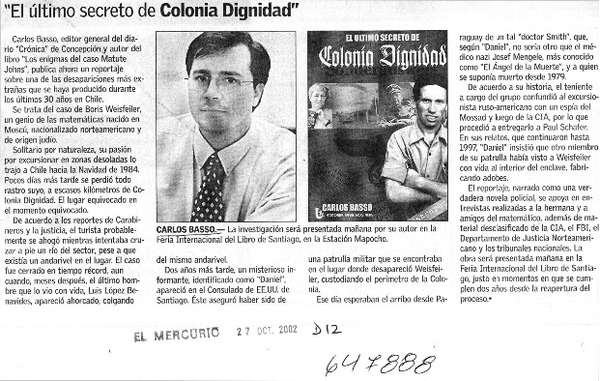 Autores chilenos - Basso, Carlos - Entrevista - Ultimo secreto de Colonia Dignidad - Weisfeiler, Boris