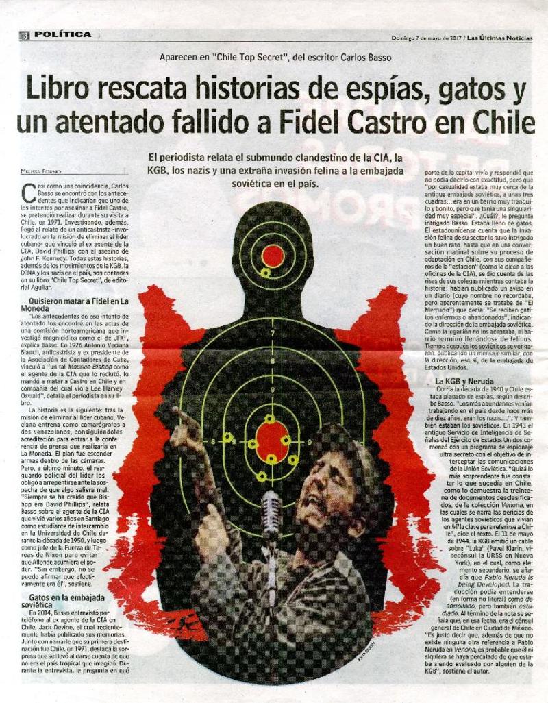 Libro rescata historias de espías gatos y un atentado fallido a Fidel Castro en Chile [artículo] / Melissa Forno.