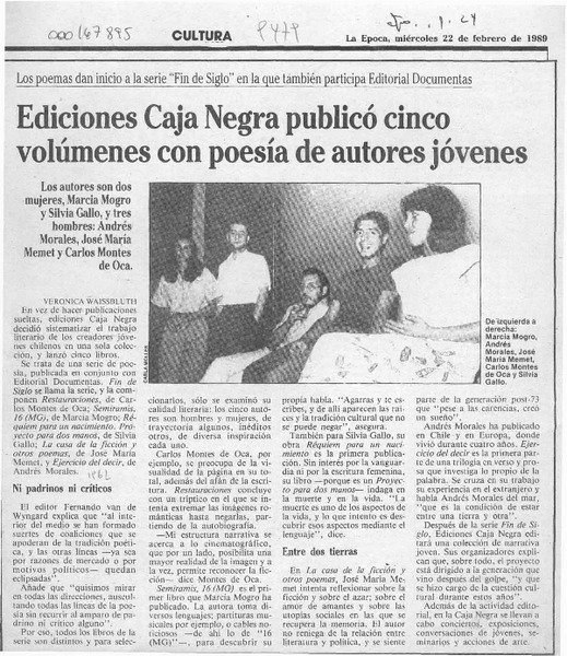 Ediciones Caja Negra publicó cinco volúmenes con poesía de autores jóvenes [artículo] Verónica Waissbluth.