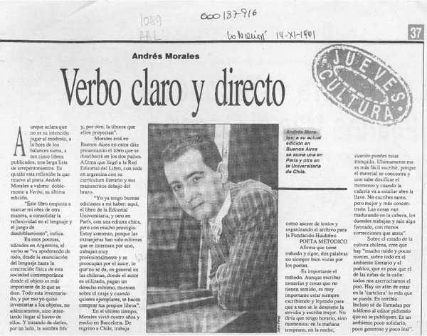 Autores chilenos - Entrevistas - Morales, Andrés - "Verbo"