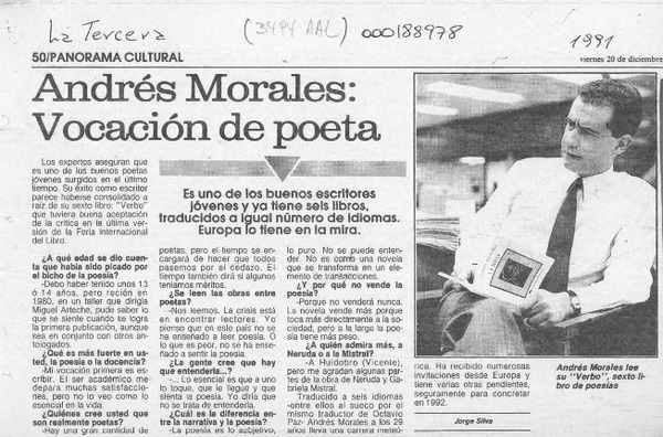 Andrés Morales, vocación de poeta [artículo] Jorge Silva.