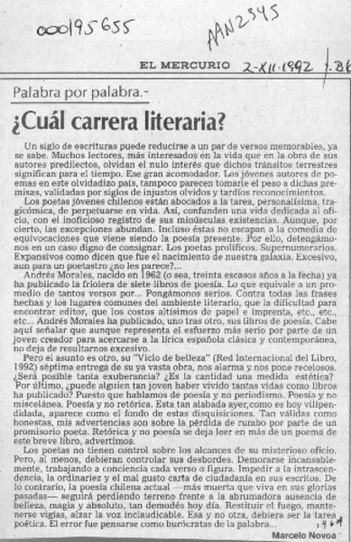 Cuál carrera literaria? [artículo] Marcelo Novoa.