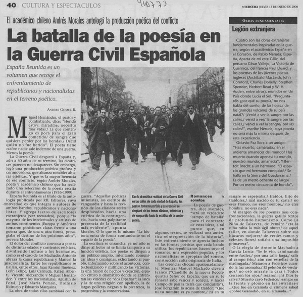 La batalla de la poesía en la Guerra Civil Española [artículo] Andrés Gómez B.