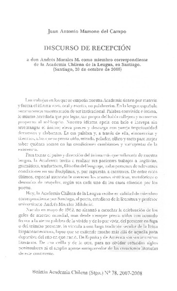 Discurso de recepción [artículo] Juan Antonio Massone del Campo.