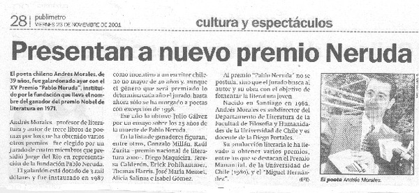 Presentan a nuevo premio Neruda [artículo].