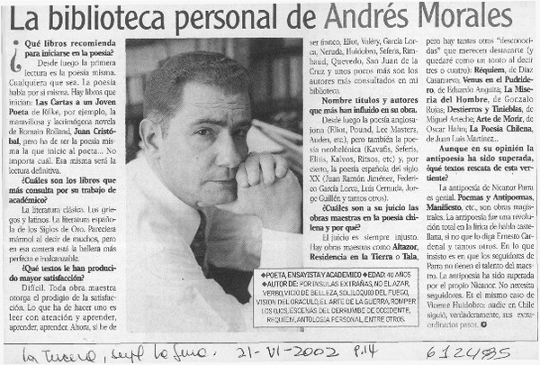 La biblioteca personal de Andrés Morales [entrevista]. [artículo] :