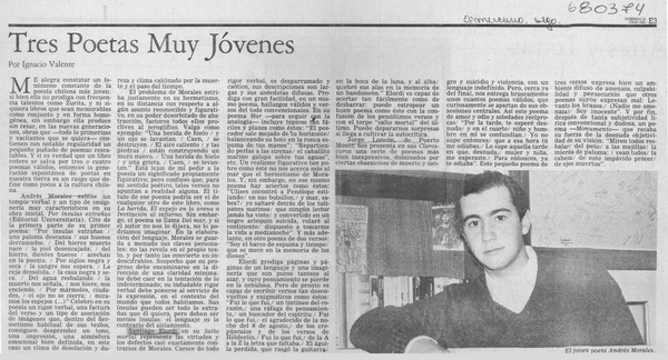 Tres poetas muy jóvenes [artículo] Ignacio Valente.