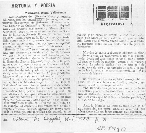 Historia y poesía [artículo] Wellington Rojas Valdebenito.