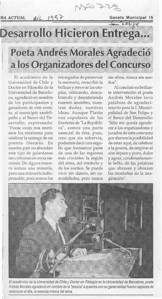 Poeta Andrés Moraleas agradeció a los organizadores del concurso [artículo].