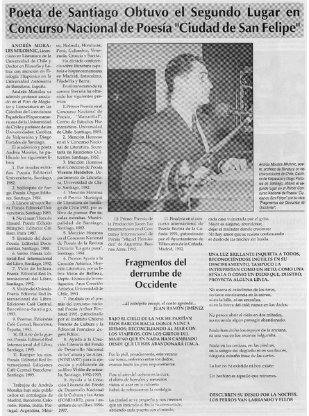 Poeta de Santiago obtuvo segundo lugar en Concurso Nacional de Poesía "Ciudad de San Felipe" [artículo].
