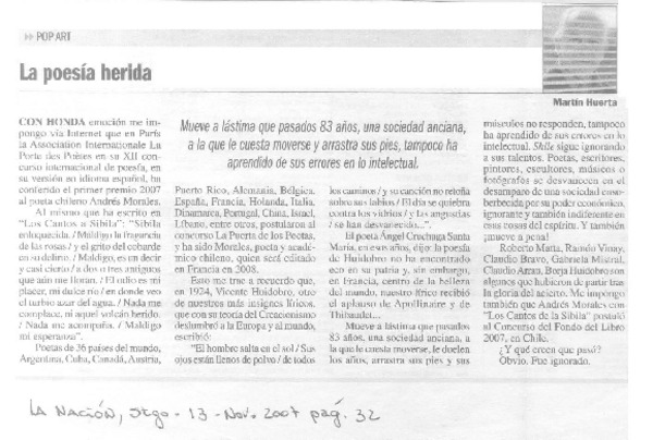 La poesía herida [artículo] Martín Huerta.