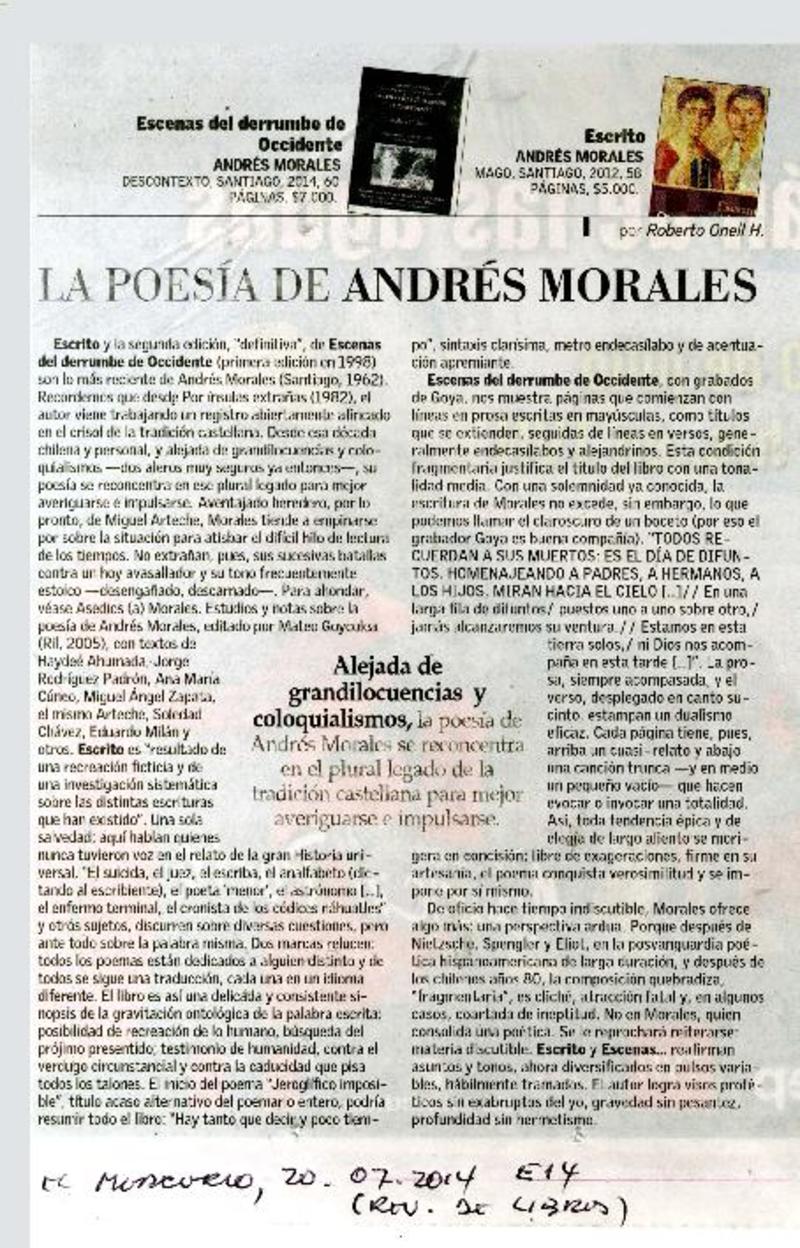 La poesía de Andrés Morales [artículo] Roberto Onell H.