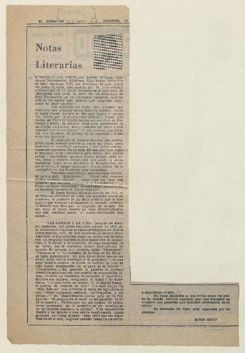 Notas literarias [artículo] Mesa Seco.