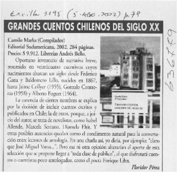 Grandes cuentos chilenos del siglo XX [artículo] Floridor Pérez