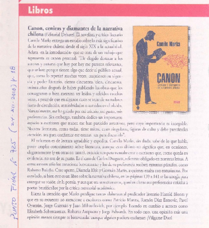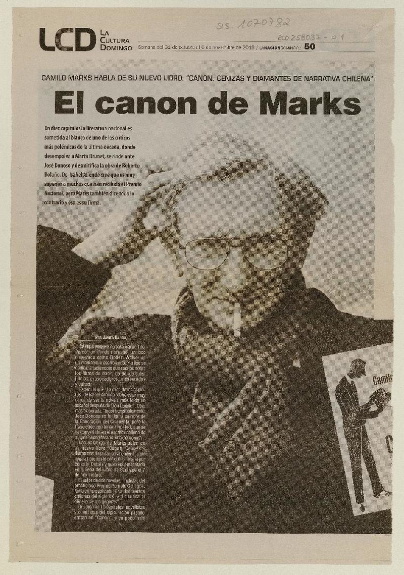 ¿El canon de Camilo Marks? [artículo] Rodrigo Cánovas