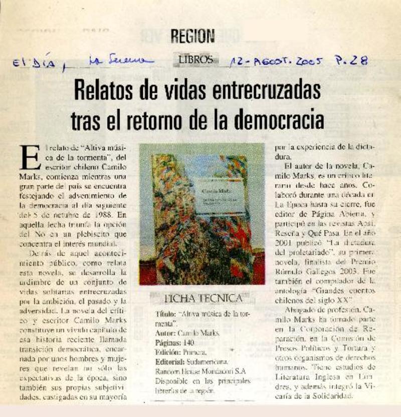 Autores chilenos - Altiva música de la tormenta - Marks, Camilo
