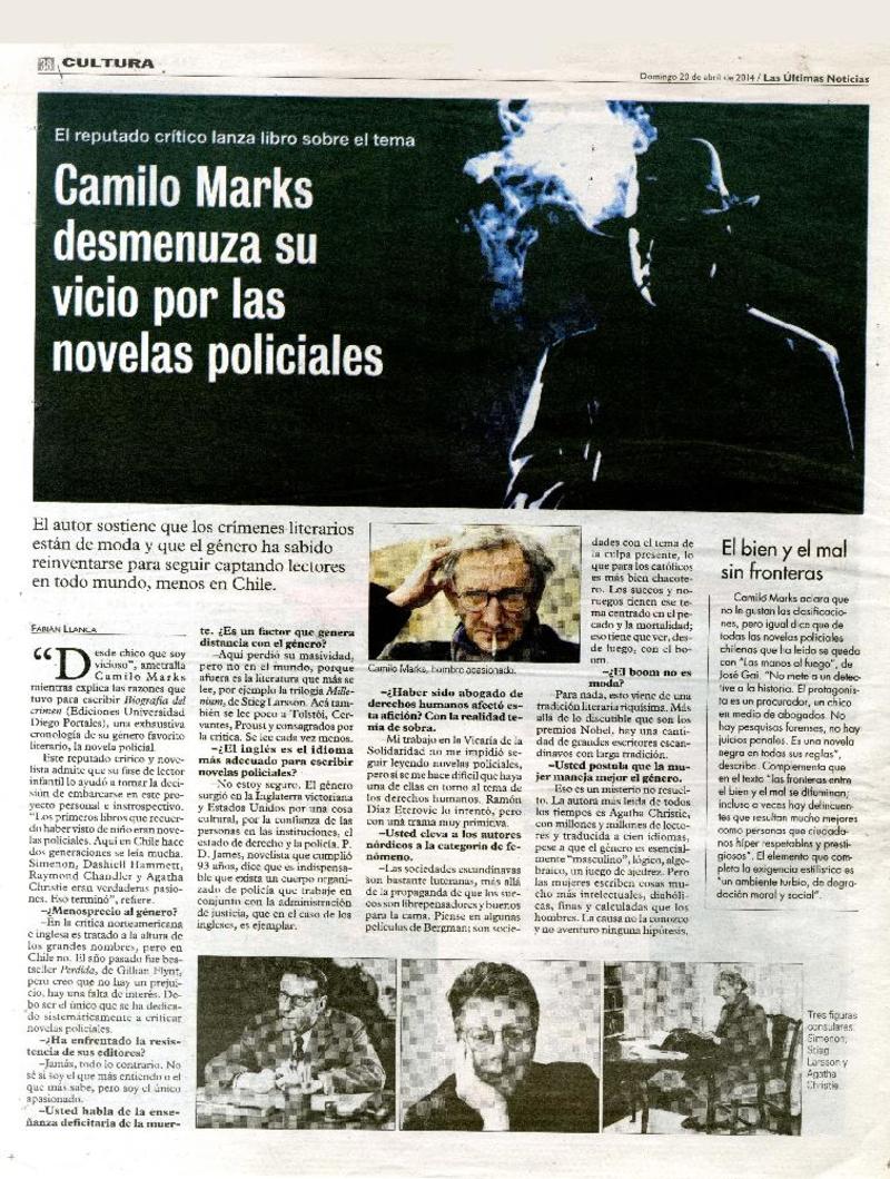 Camilo Marks desmenuza su vicio por las novelas policiales [artículo] Fabián Llanca
