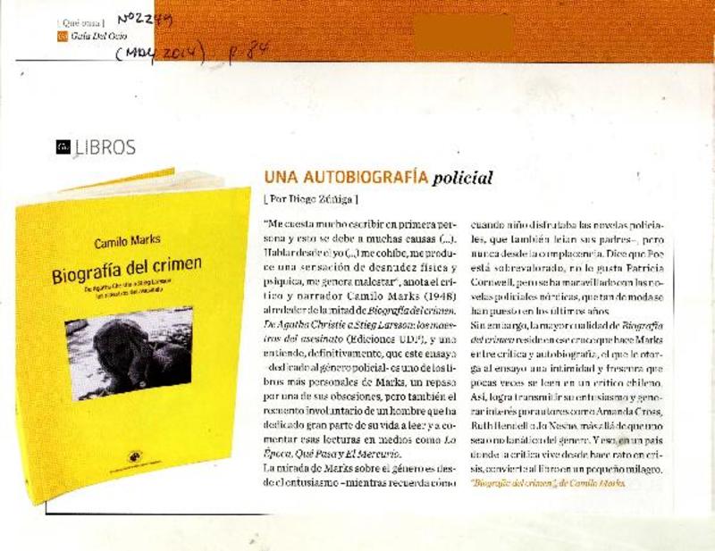 Camilo Marks y su recorrido por la novela policial [artículo] Constanza Rojas Valdés