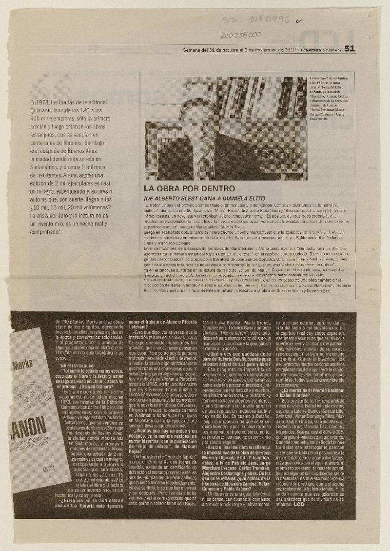 "De alguna forma, en el libro ella anunció su partida" (entrevista) [artículo] Sergio Rodríguez.