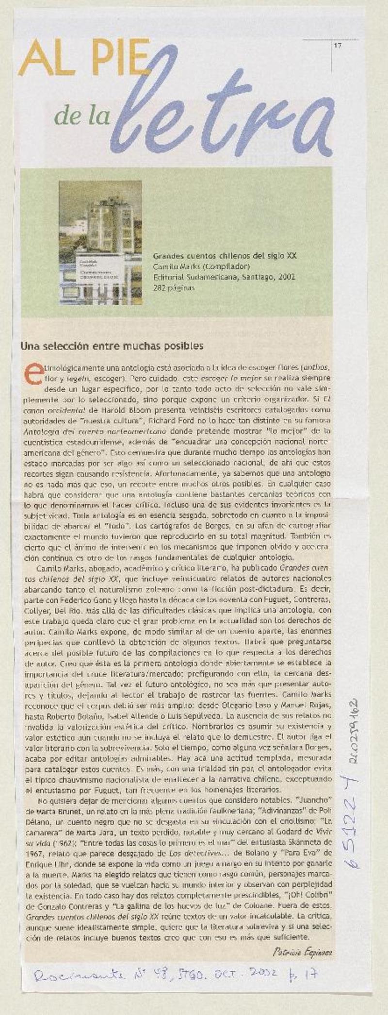 Una selección entre muchas posibles [artículo] Patricia Espinosa.
