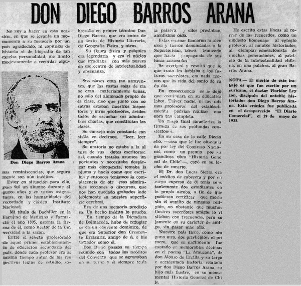 Don Diego Barros Arana [artículo] Floridor Leyton.