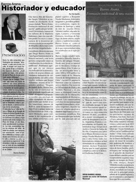 Páginas escogidas de Barros Arana [artículo] Tito Castillo.