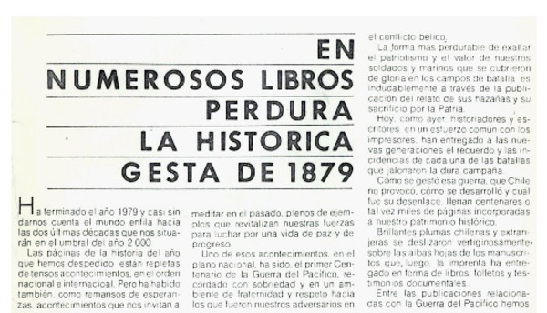 En numerosos libros perdura la histórica gesta de 1879. [artículo]