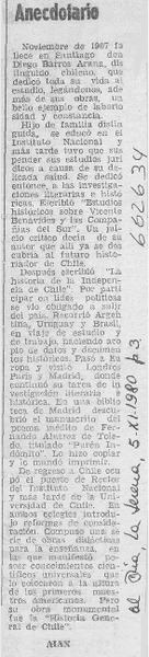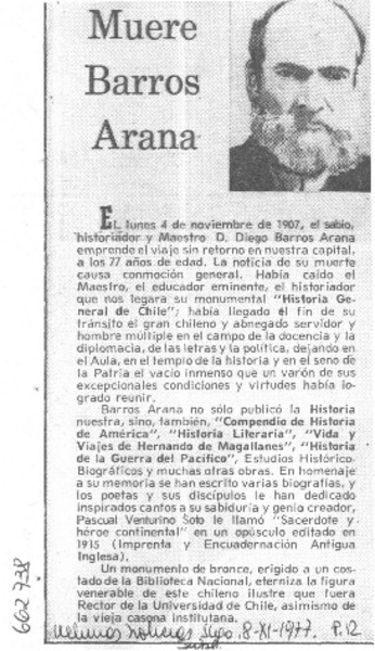 Muere Barros Arana. [artículo]