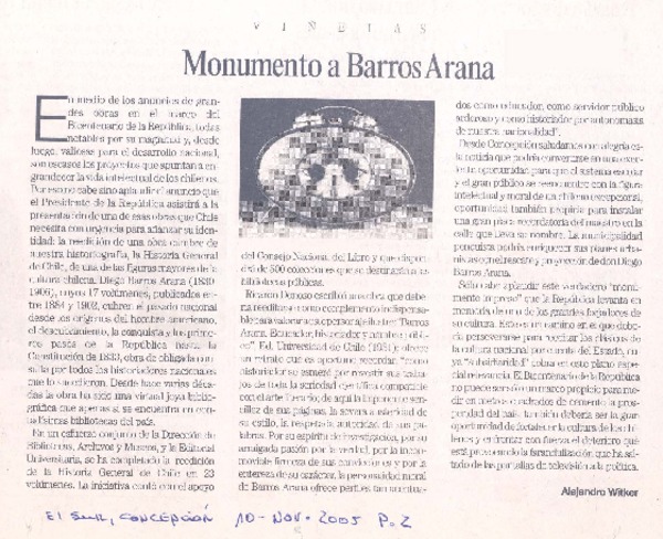 Monumento a Barros Arana [artículo] Alejandro Witker.