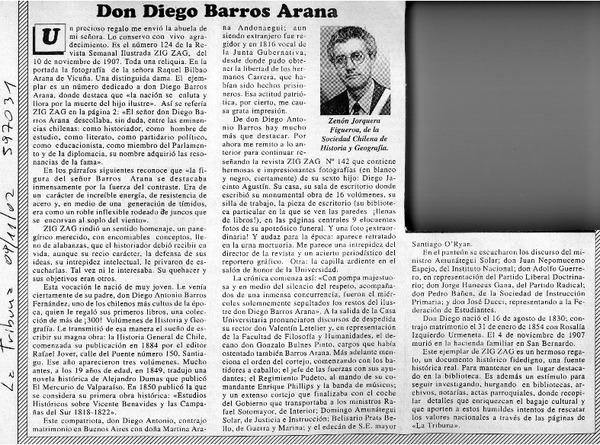 Don Diego Barros Arana [artículo] Zenón Jorquera Figueroa.