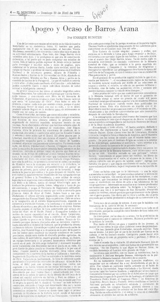 Apogeo y ocaso de Barros Arana [artículo] Enrique Bunster.