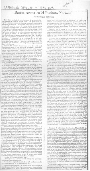 Barros Arana en el Instituto Nacional [artículo] Enrique Bunster.