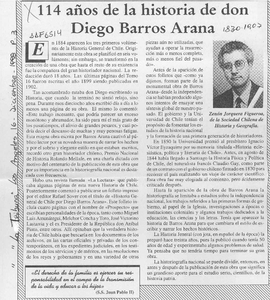 114 años de la historia de don Diego Barros Arana [artículo] Zenón Jorquera Figueroa.