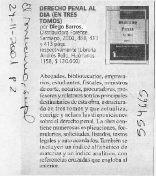 Autores chilenos - Barros Arana, Diego - Derecho penal al día