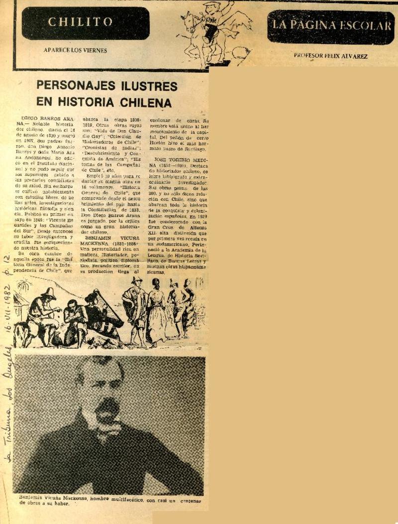 Personajes ilustres en historia chilena [artículo] Felix Alvarez.