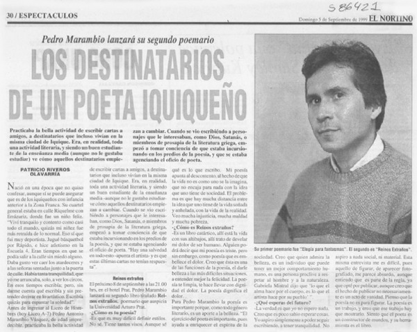 Los destinatarios de un poeta iquiqueño [artículo] Patricio Riveros Olavarría