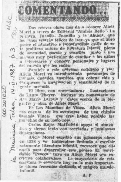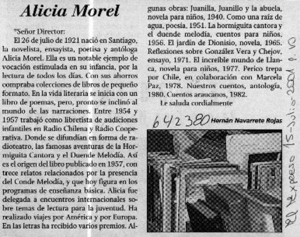 Alicia Morel [artículo] Hernán Navarrete Rojas
