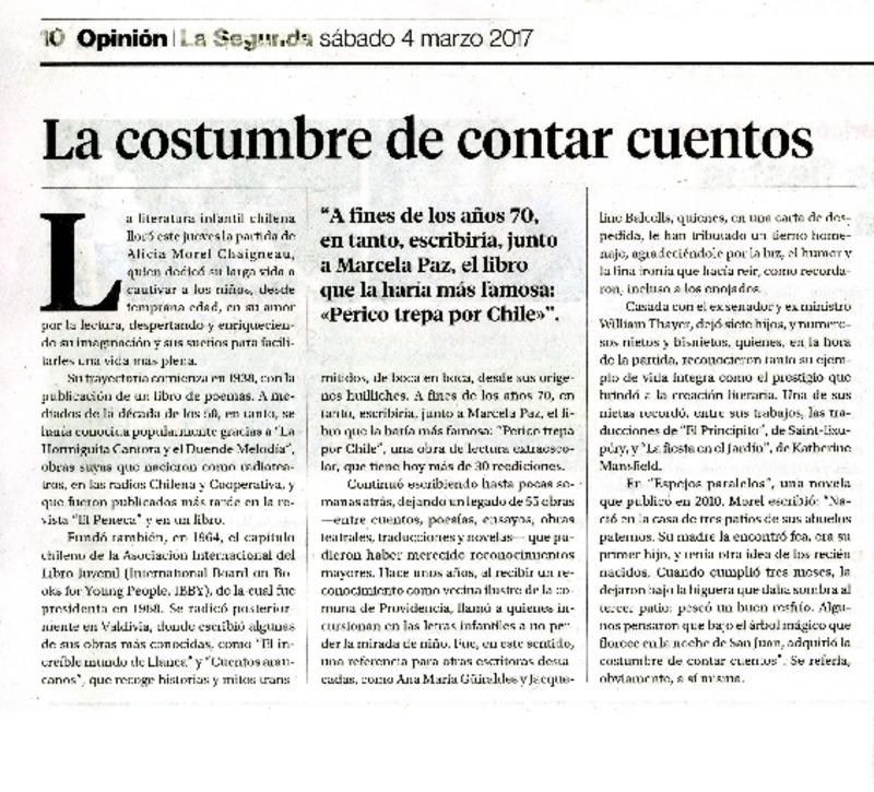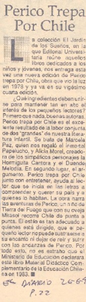 Entrevista - Paz, Marcela - Morel, Alicia - Autoras chilenas - Perico trepa por Chile