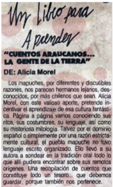 Cuentos araucanos- la gente de la tierra- prólogo. [artículo]