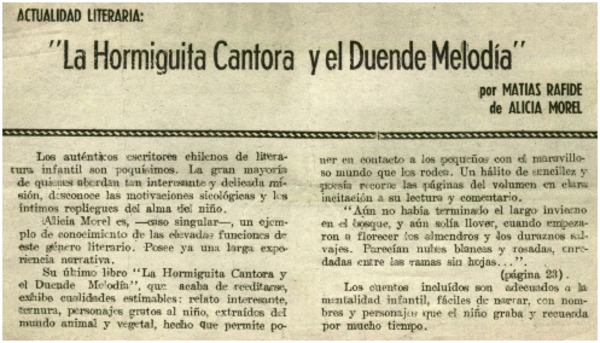 Autoras chilenas - Morel, Alicia - Hormiguita cantora y el duende melodía